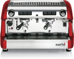 اسپرسوساز سوفیا، یک دستگاه اسپرسوساز اتوماتیک دو گروپ است که برای استفاده حرفه ای طراحی شده است. دارای ظرفیت دیگ 12 لیتری، 3200 وات و ابعاد آن 470 میلی متر *530 میلی متر * 747 میلی متر است. این دستگاه ساخت ایتالیا می باشد و برای محیط های تجاری مناسب می باشد.