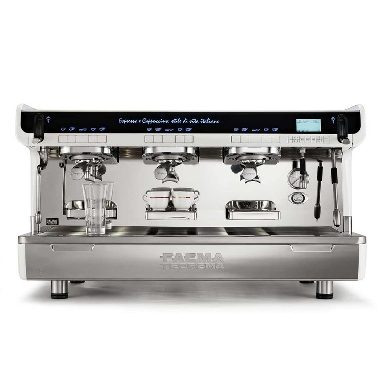 اسپرسو ساز صنعتی فائما TEOREMA یکی از قویترین و بهترین و حرفه ای ترین دستگاه های قهوه ساز صنعتی است که در بازار جهانی موجود می باشد. کمپانی فائما که یکی از زیرمجموعههای کمپانی جیمبالی ایتالیا می باشد اقدام به تولید دستگاه های قهوه ساز بسیار حرفهای و صنعتی نموده است دستگاه قهوه ساز صنعتی فائما مدل TEOREMA طراحی شده برای نشان دادن تعادل کامل بین طراحی و عملکرد مطلوب،استایل خطی تمیز Faema Teorema ظاهری مینیمال و مدرن را ارائه می دهد، در حالی که الکترونیک پیشرفته کنترل ساده و راحتی کامل را برای باریستا فراهم می کند (: